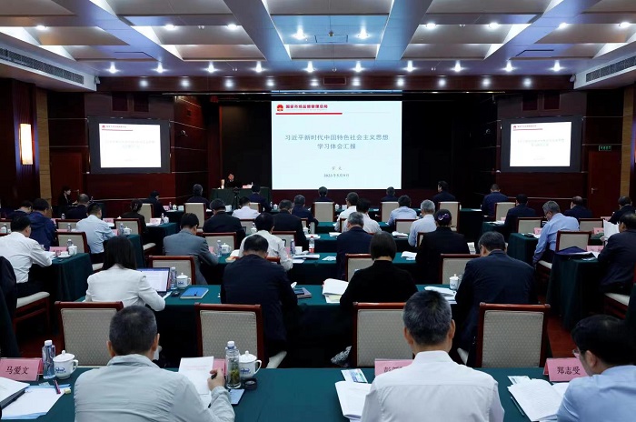 在讀書班集中交流暨總結(jié)會上,總局領(lǐng)導(dǎo)、食品安全總監(jiān)作重點發(fā)言,結(jié)合分管領(lǐng)域談學(xué)習(xí)體會和貫徹落實工作打算,各組就學(xué)習(xí)討論情況作匯報發(fā)言。總局黨組成員、副局長田世宏在總結(jié)講話時要求,要切實做好學(xué)習(xí)貫徹習(xí)近平新時代中國特色社會主義思想的深化、內(nèi)化、轉(zhuǎn)化工作,進一步增強運用新時代黨的創(chuàng)新理論成果分析問題、解決問題的能力,進一步強化正風(fēng)肅紀(jì)、縱深推進全面從嚴(yán)治黨,切實把新時代黨的創(chuàng)新理論轉(zhuǎn)化為做好具體工作的思路、舉措。