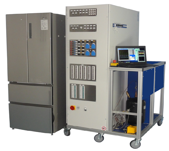 分析設備帶有64個熱電偶測溫點、20個熱流傳感器、6個熱負荷、6個相對濕度傳感器、6個加熱元件、5個步進電機、5個壓力傳感器、4個選擇閥、3個震動傳感器,可以控制冰箱6個溫區、4個制冷系統。