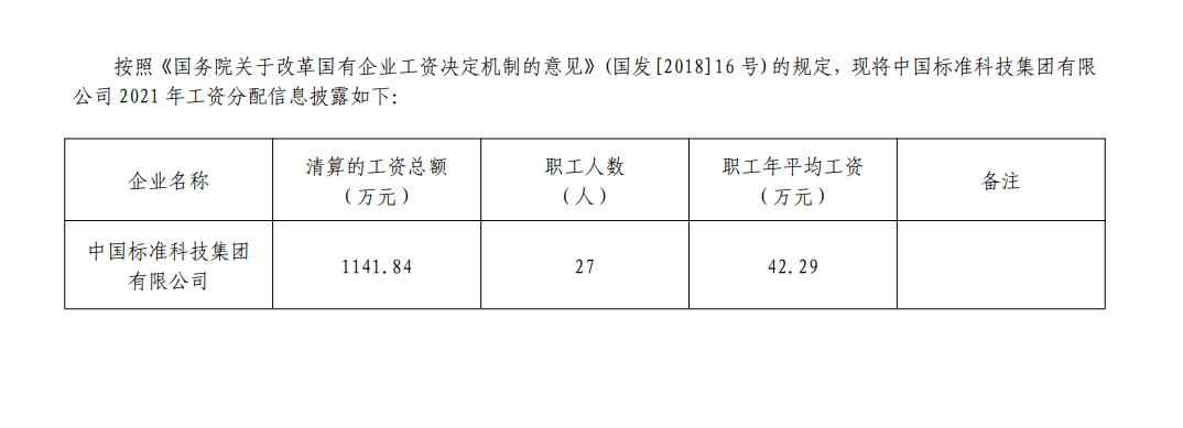 2021年中國標(biāo)準(zhǔn)科技集團(tuán)有限公司工資分配信息披露