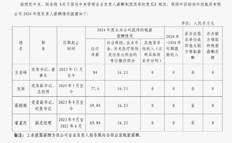 中國標準科技集團有限公司企業負責人2024年度薪酬情況