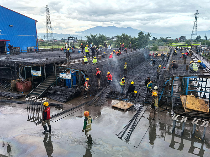 工人在印度尼西亞雅萬高鐵4號梁場作業(2022年5月1日攝)。新華社發(王增堃 攝)