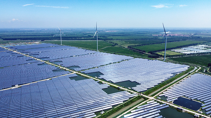 這是在天津市寧河區寧河鎮大月河村拍攝的110千伏大月河光伏電站(2022年7月18日攝,無人機照片)。新華社記者 孫凡越 攝
