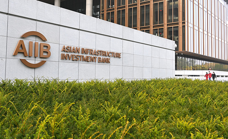 這是亞洲基礎設施投資銀行(亞投行)標志(2021年10月25日攝)。新華社記者 李賀 攝