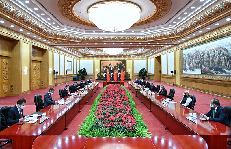 習近平強調,中方贊賞巴方堅定推進對華友好合作,感謝巴方在涉及中國核心和重大關切問題上支持中方,將堅定支持巴方維護國家主權和領土完整、發展利益、民族尊嚴,堅定支持巴基斯坦實現穩定團結、發展繁榮。中方對巴基斯坦人民遭受特大洪災深表同情,將追加提供緊急援助,幫助巴基斯坦災后重建,支持巴方恢復災后農業生產,加強防災減災、應對氣候變化合作。