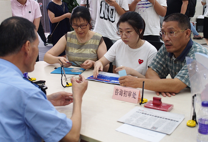 在上海市閔行區(qū)證照辦理中心,民警在解答有關為香港居民辦理居住證的手續(xù)問題(2018年9月1日攝)。新華社記者 任瓏 攝